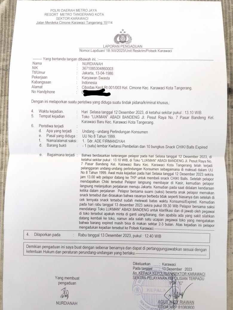 Nurdianah menceritakan kronologi kejadiannya bermula membeli snack yang diketahui expired didagangkan pelaku,