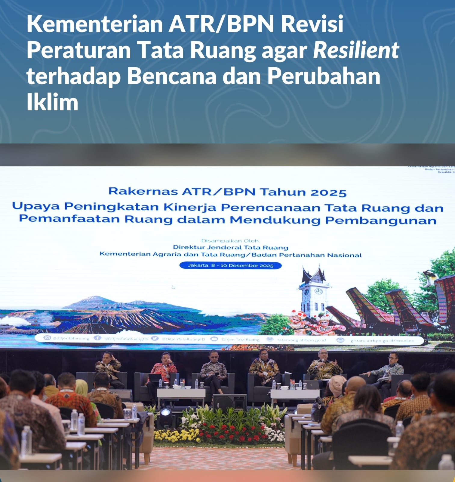 Sesi pemaparan Dirjen Tata Ruang ini merupakan serangkaian kegiatan dari Rakernas Kementerian ATR/BPN yang berlangsung dari 8 s.d. 10 Desember 2025.