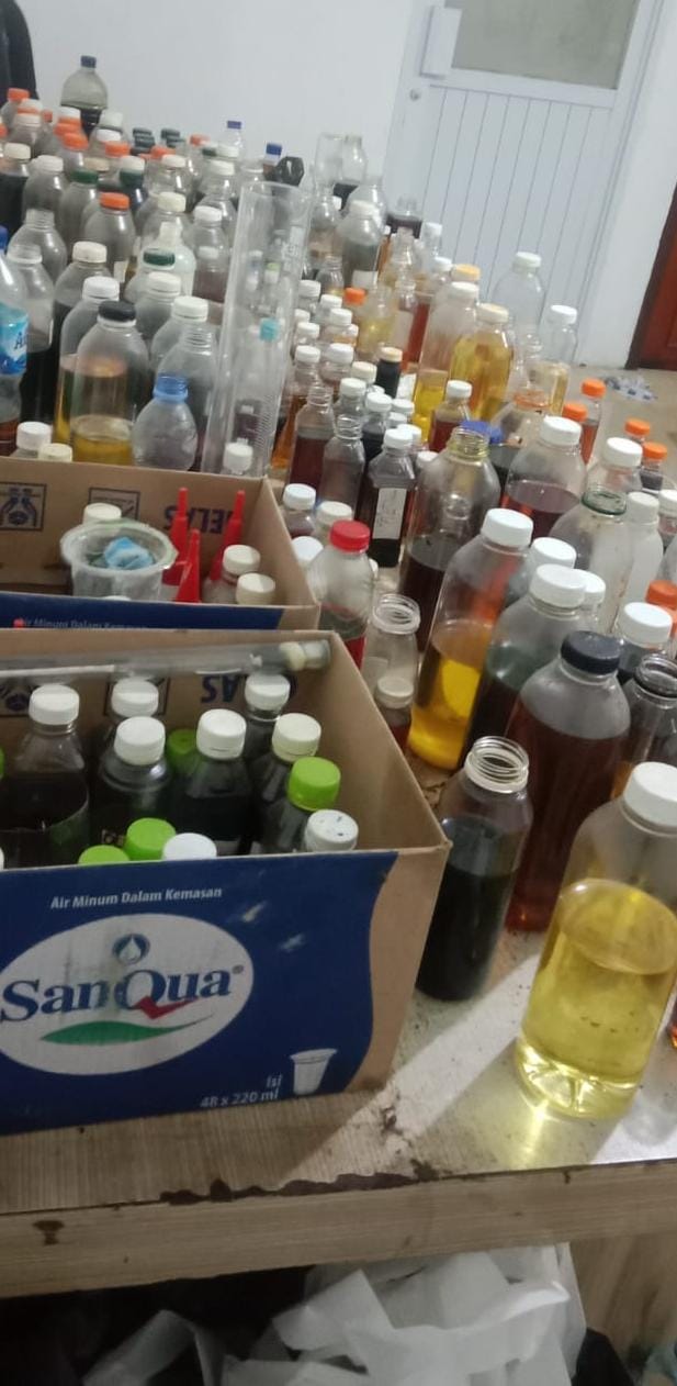 Berhasil menemukan sejumlah oli yang sudah dikemas kebeberapa merek terkenal seperti Yamalube dan MPX10 di lokasi, (26/04/2024).