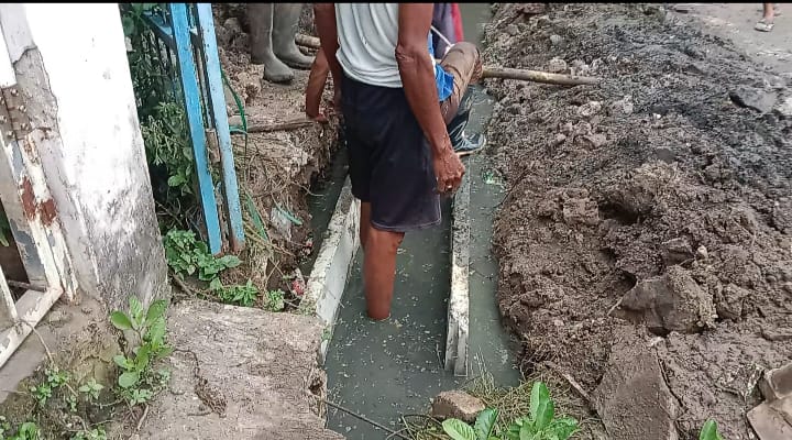 Proyek pembangunan saluran air (u-dith) di Kampung Dampit RT 02/03, Desa Sindang Jaya, Kecamatan Sindang Jaya, Kabupaten Tangerang.